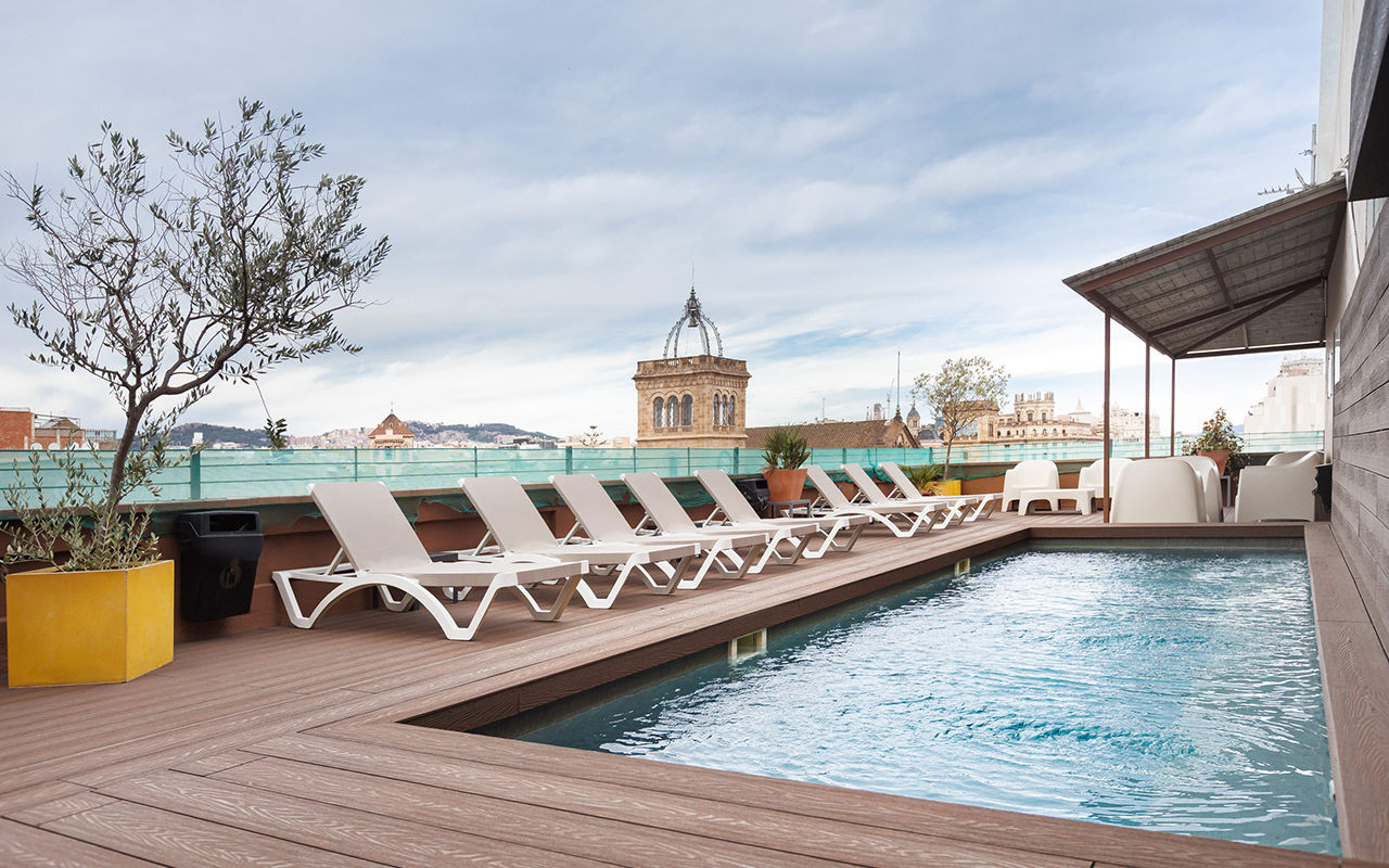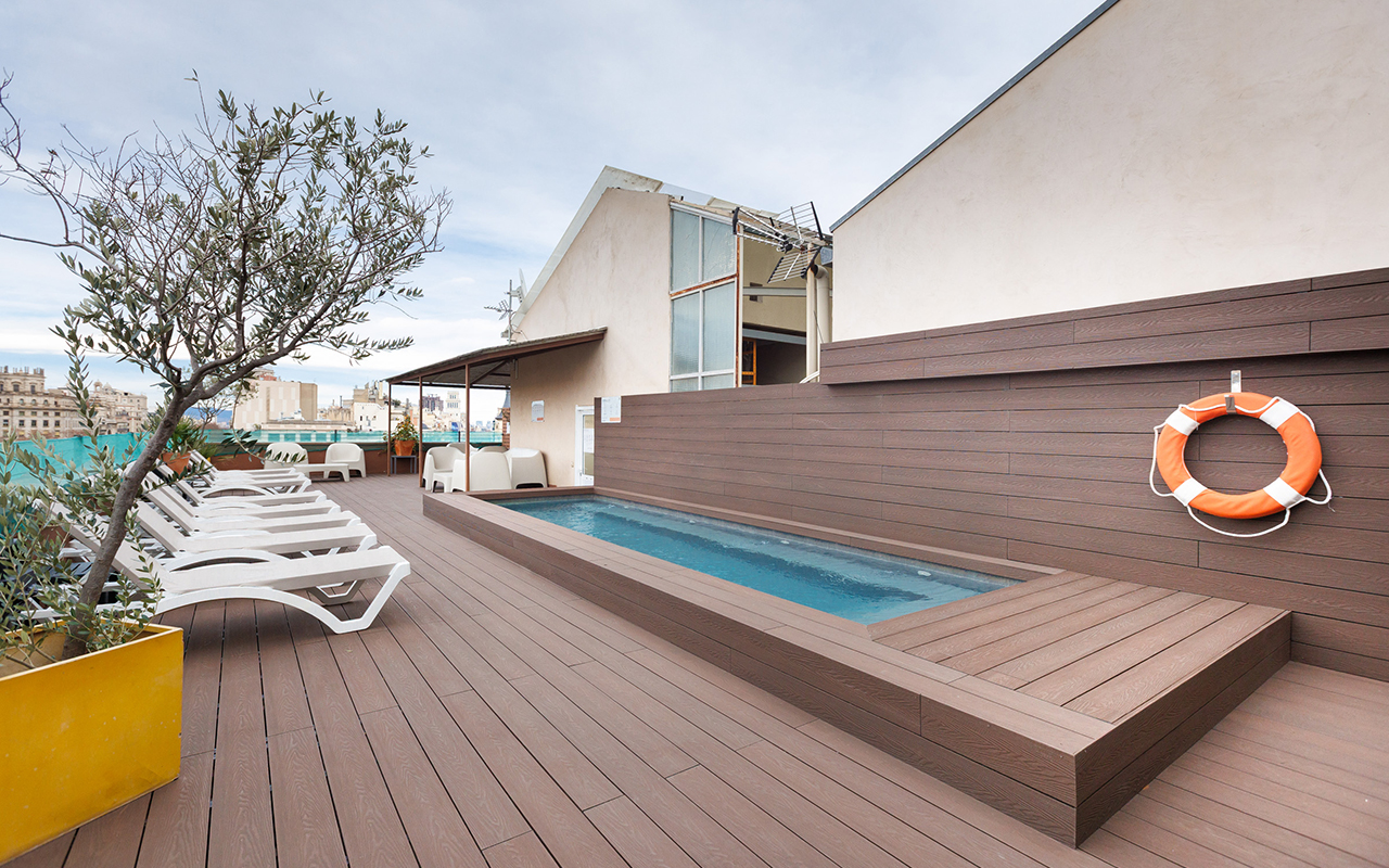 La piscina comunitaria de la azotea mide 6,75 metros de largo por 2 metros de ancho.